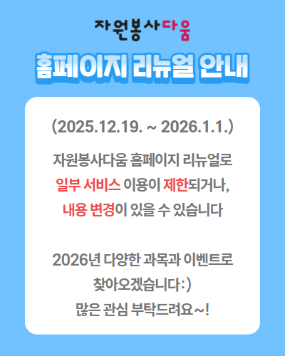 안녕하세요, 자원봉사다움 이용자 여러분,